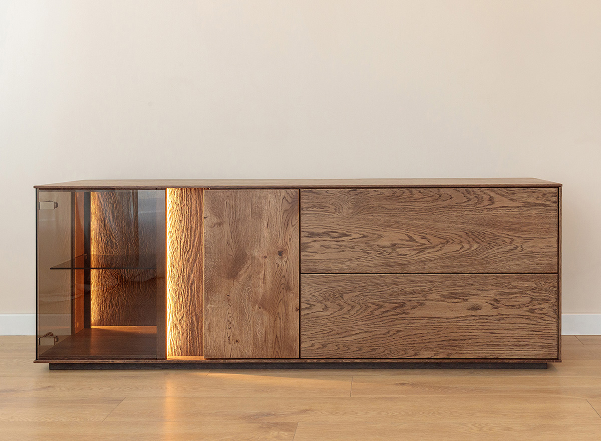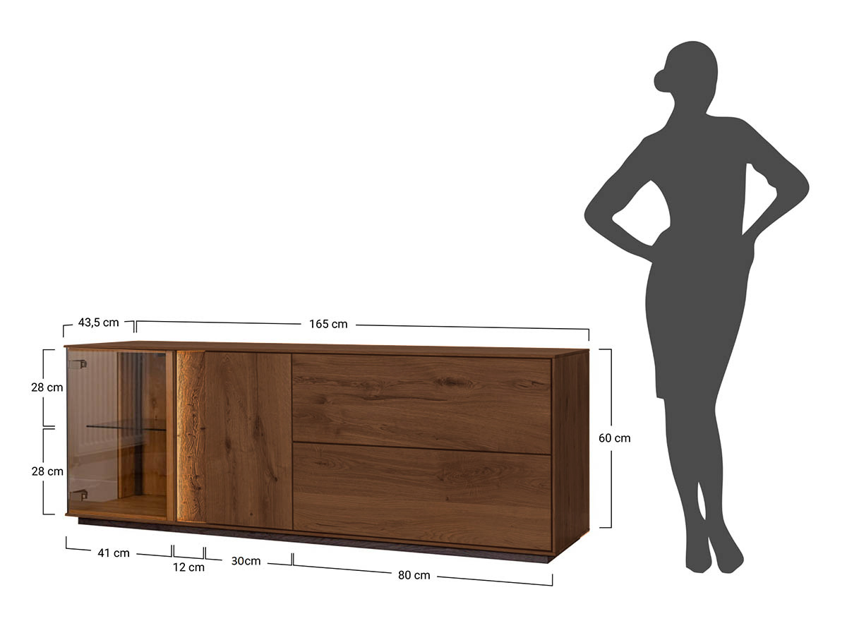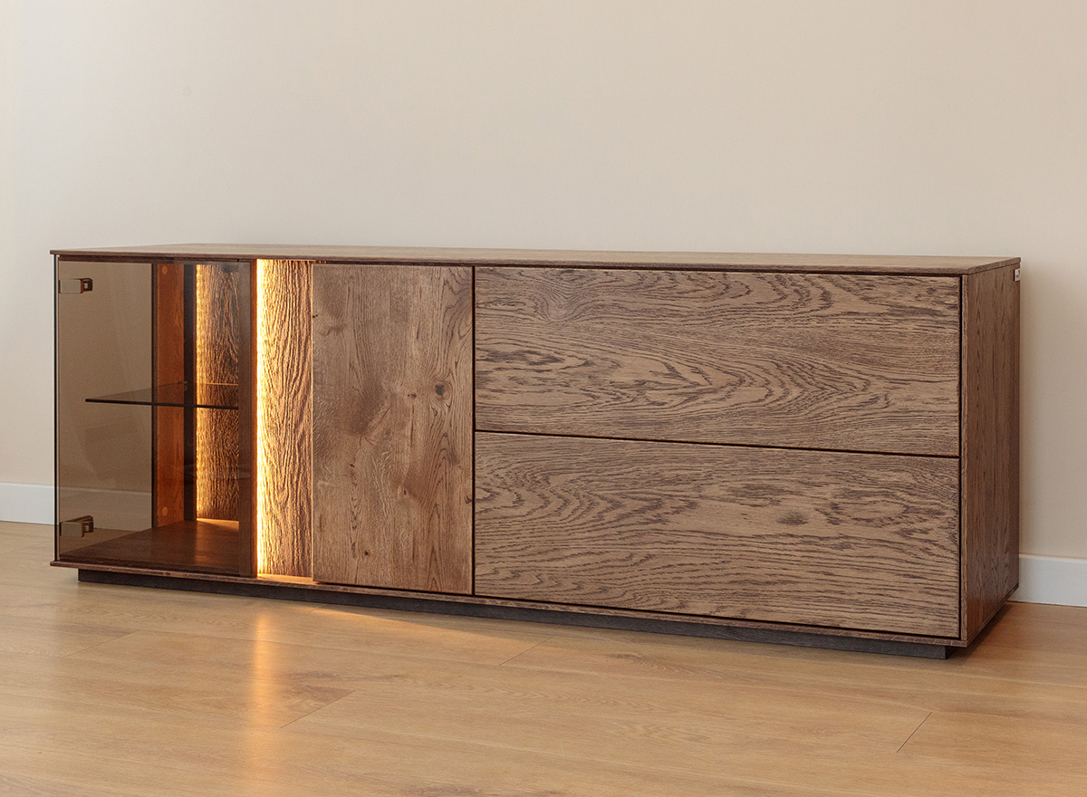 COLLODI - NIEDRIGE KOMMODE GLAS- EICHE TABAK