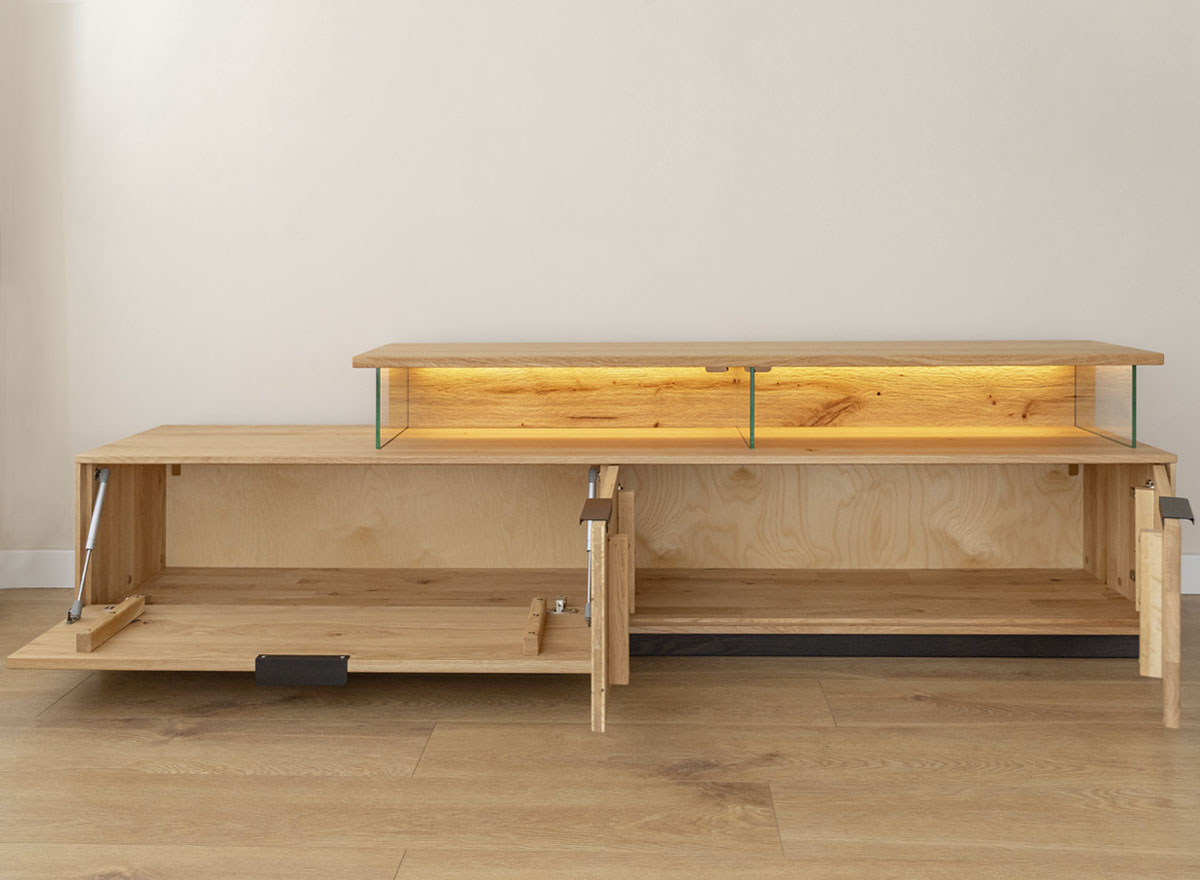 bei der Konfiguration der Möbel bietet. Das Eichenholz ist mit natürlichem Öl geschützt. Die Kollektion ist mit einem