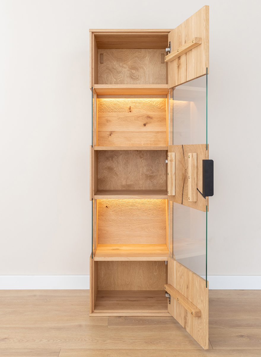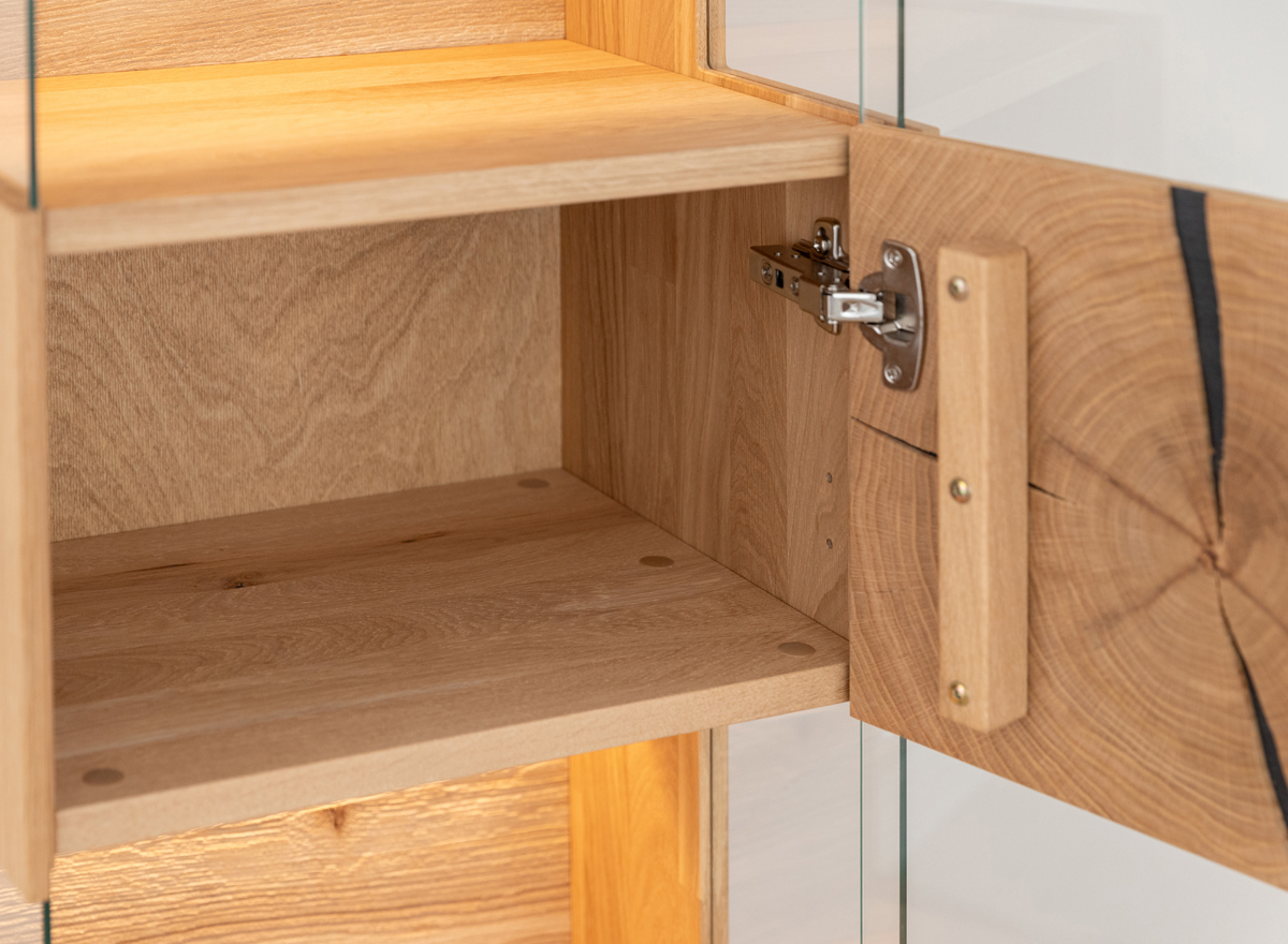 bei der Konfiguration der Möbel bietet. Das Eichenholz ist mit natürlichem Öl geschützt. Die Kollektion ist mit einem